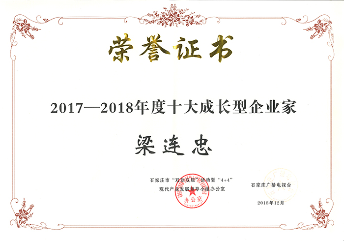 2018年底,石家莊市“雙創(chuàng)雙服”活動暨“4+4”現(xiàn)代產(chǎn)業(yè)發(fā)展領(lǐng)導(dǎo)小組辦公室、石家莊廣播電視臺聯(lián)合舉辦了紀(jì)念改革開放40周年暨石家莊年度經(jīng)濟人物評選活動。京華電子董事長梁連忠榮獲“2017—2018年度十大成長型企業(yè)家”稱號。